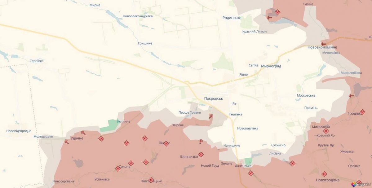 За минувшие сутки российские оккупанты сумели добиться частичного успеха в городе Покровск Донецкой области. На это указывает карта украинского аналитического проекта DeepState.